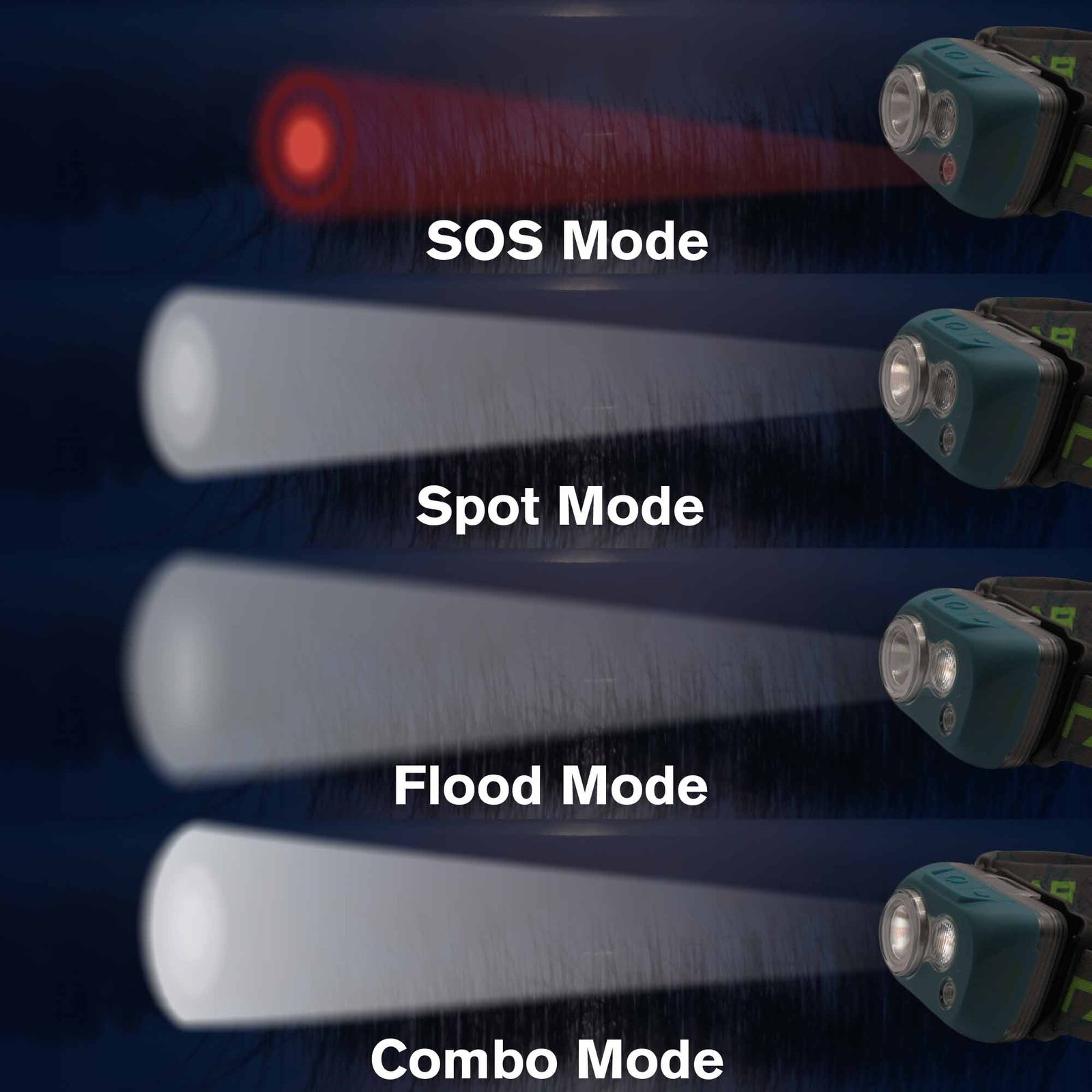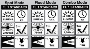 • One light, 4 modes: Spot, Flood