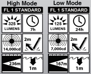 The New Razor has Class I, Division 1 safety approvals and combines the features of the original Razor and the Razor 2 into one light. It has a high mode of 325 lumens with a 7 hour runtime and a 125 lumen low mode for an extended runtime of 24 hours.On high the light projects 236 meters and on low it reaches 167 meters.